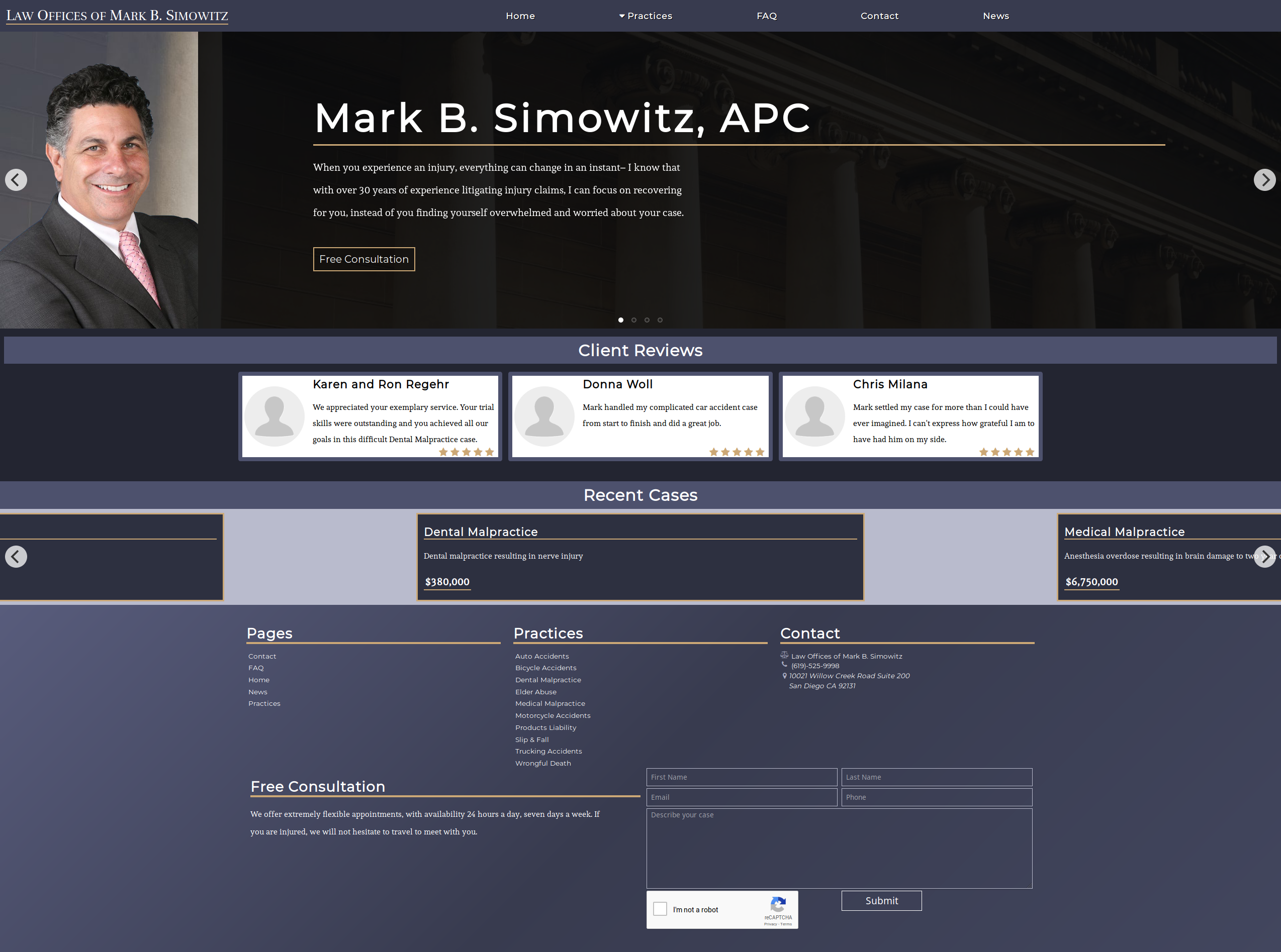I was tasked with building an updated website for a law office. The website content is entirely editable from the WordPress dashboard allowing for nearly complete client management of the site (minus security). Lead generation via a form in the footer alerts the office of new client inquiries.